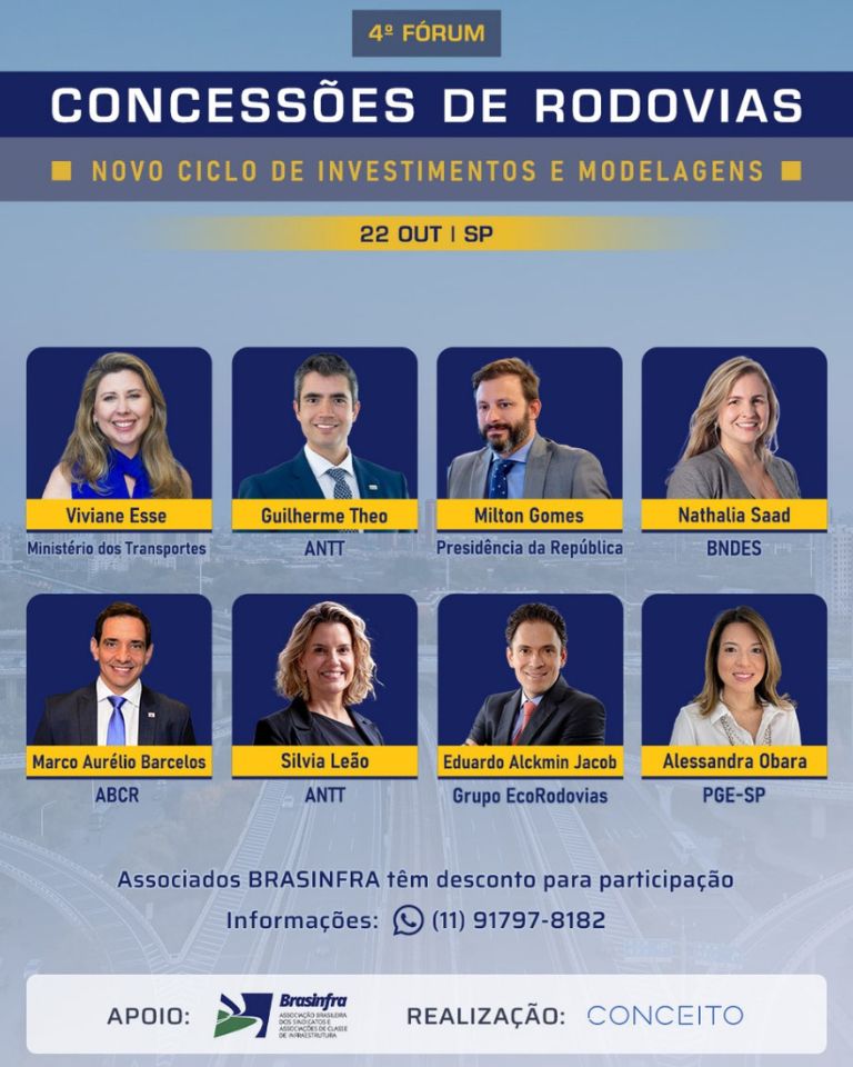 É uma oportunidade única para acompanhar de perto as principais discussões do setor, ouvir especialistas, trocar experiências e se atualizar sobre as tendências que estão moldando o futuro das concessões.
